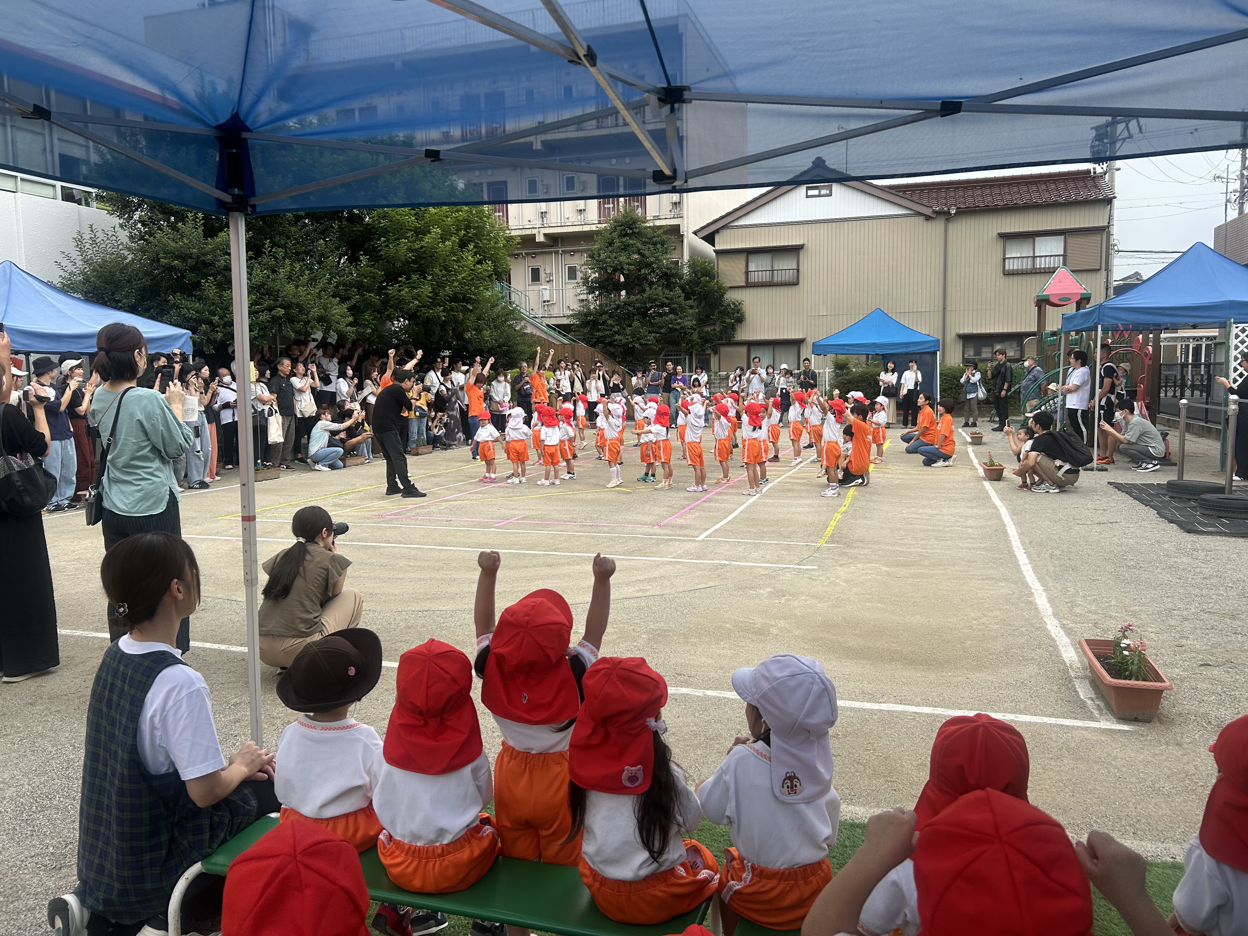 満3歳・すみれ組のお友だちも、テントから応援です‼